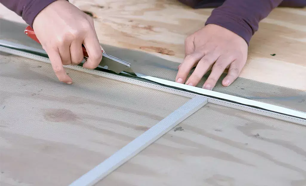 Step 5: Trim the excess screen: Once the screen is secured all the way around, use a utility knife or scissors to trim off any excess material. Be careful not to cut into the spline or damage the screen in the process.