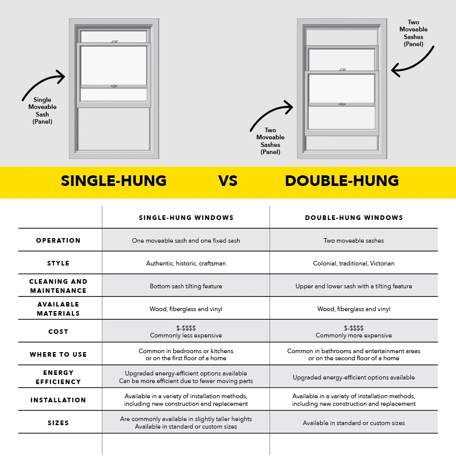 Double hung Windows provide more ventilation than single hung windows. The top sash on a double hung window can be opened to allow air flow into and out of your home, while the bottom panel remains fixed in place without any ability for opening at all.